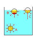 A molécula "A" da figura 1 sofre atrações iguais em todos os sentidos e direções, com uma conseqüência atração resultante nula. No caso da molécula "B", o conjunto de moléculas contido na parte hachura da exerce forças de atração não contrabalançadas. Em conseqüência, aparece uma força perpendicular á superfície livre dirigida, para o interior da massa líquida. No caso da molécula "C", a atração é máxima. Estas forças fazem com que a superfície livre dos líquidos se comporte como uma membrana elástica tensa. Isto significa, por exemplo, a "flutuação" de uma agulha em um líquido, ou o fato de insetos caminharem sobre as superfície de líquidos.