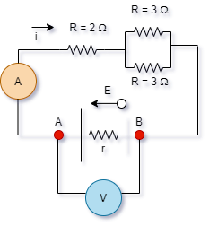 d.d.p.AB = f.e.m. - queda de potencial devido à resistência interna.